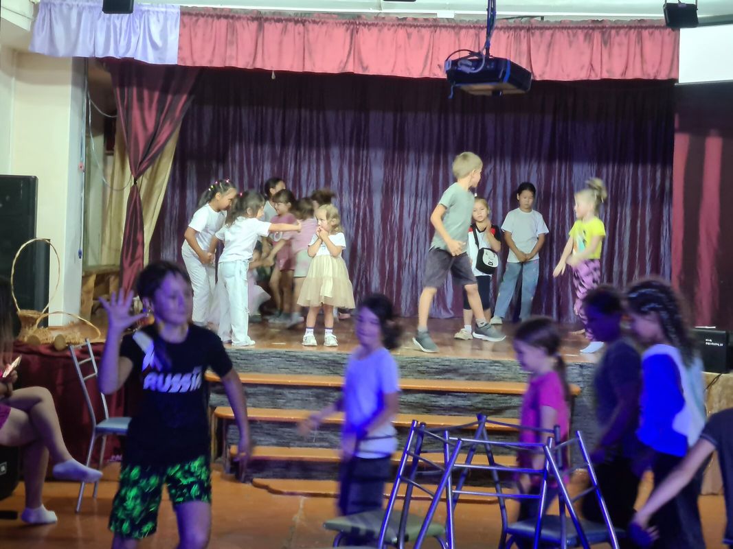Дети активно участвовали в разнообразных играх, которые создавали весёлую и дружелюбную атмосферу. Были организованы командные игры, танцевальные конкурсы и викторины, связанные с летом и музыкой.