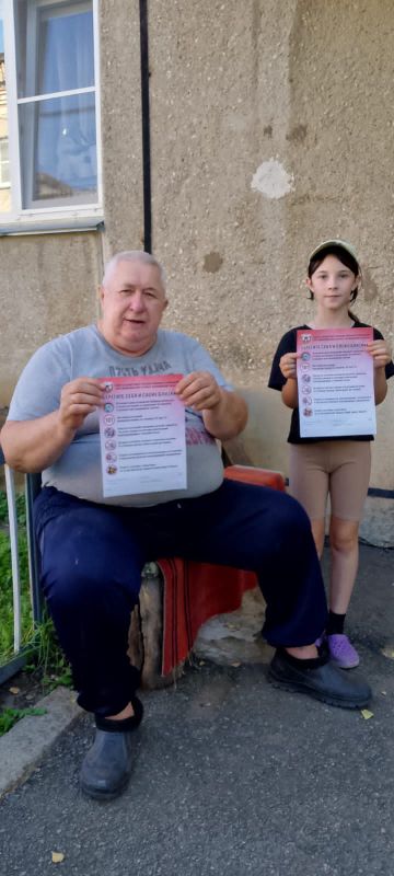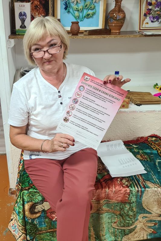 2. **Раздача буклетов:** Буклеты содержали советы по предотвращению пожаров в быту, информацию о том, как действовать в случае возникновения пожара, а также номера телефонов для вызова экстренных служб.