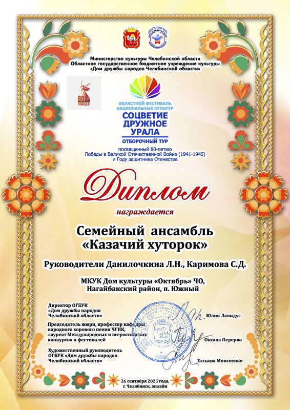 Семейный ансамбль "Казачий хуторок" принял участие в конкурсе "Соцветие дружное Урала".